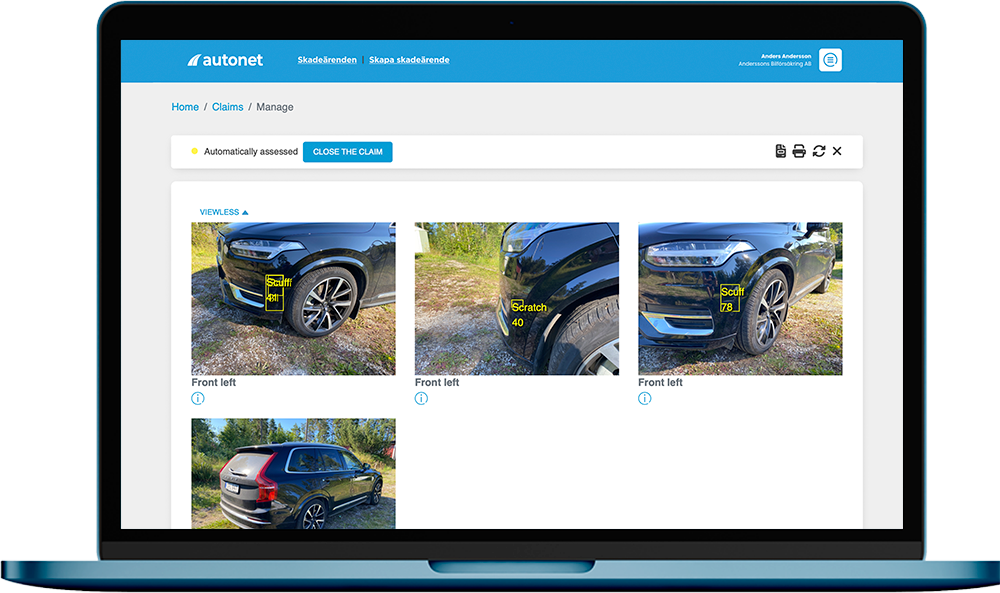 We offer a software service designed to streamline and automate the claims handling process for insurance companies and fleet operators. Our market-leading image recognition and AI-powered decision engine optimizes the claims process for vehicle damages. Our solutions help you close cases faster and at a lower cost – all while contributing to a more sustainable world!